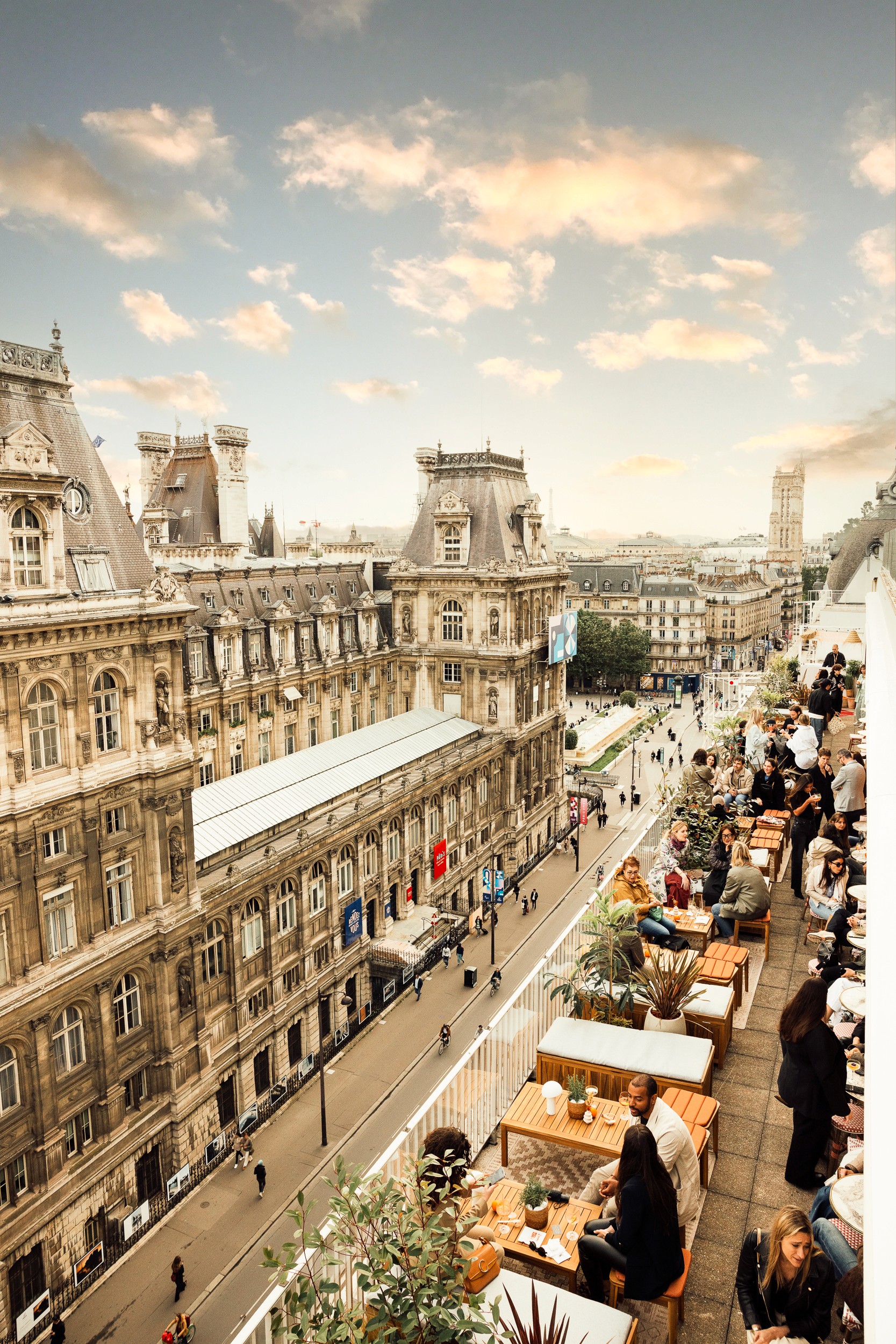 Ouverture du Rooftop au 7ème étage en plus de la terrasse du 6ème, un espace de 260m2 ouvert sur les toits de Paris.